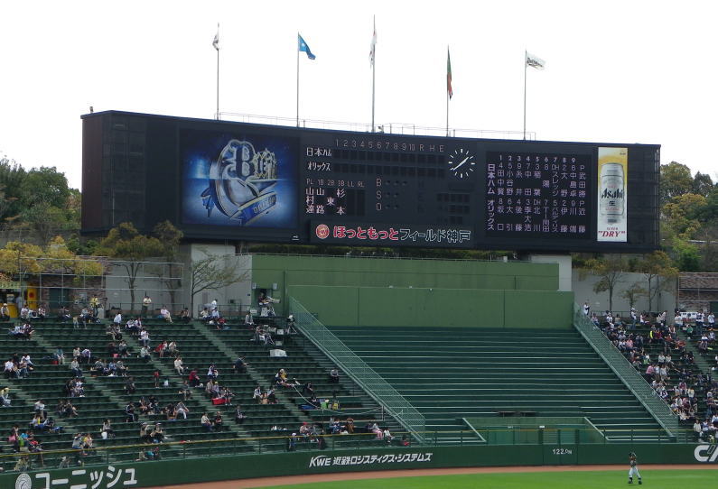 外野フェンスも非常に低く、BWが強かった頃はイチロー、谷、田口の鉄壁の外野トリオのファインプレーでファンを沸かせたが、近年はボールと一緒にスタンドインしたり、アウトカウント間違えて、T選手がボールをスタンドに投げ入れ仰木監督にカミナリを落とされるなどなど(2アウトランナー無し)ある意味外野は珍プレー好プレーの宝庫といってもよかった。選手との距離も近く、練習時間中にはビジターの選手、投手陣がアップするので時間を見計らってサインを求めるのもよい。 |