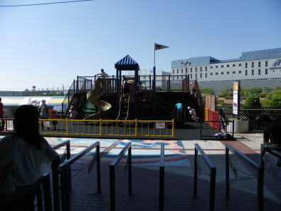 その他にも、ネッピーのエアバルーンドーム(ふわふわ)やティーボールのエリア(2002年当時)も在ります。唯一の弱点は、千葉マリンとは違い外に在るので雨が降ると遊べないこと… |