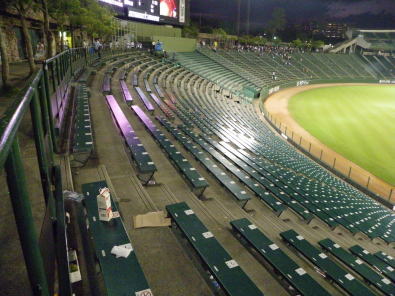 ちょうど全席禁煙になったのが岡●球団社長の頃。『球場さえよければ客は入る』とほざいたあのバカ狸の遺産としてあざ笑いながら見ると意外に乙な物である。